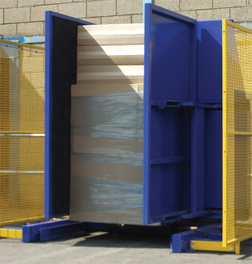 The Premier Clamp Changer has been developed in response to customer requests for a pallet changing method that does not require tipping or inverting of the load. It has twin, soft rubber faced clamp plates that gently grip the product. The clamping pressure on the load is adjustable, and can be increased to the point where the machine will hold a load weighing up to 1000kgs.
